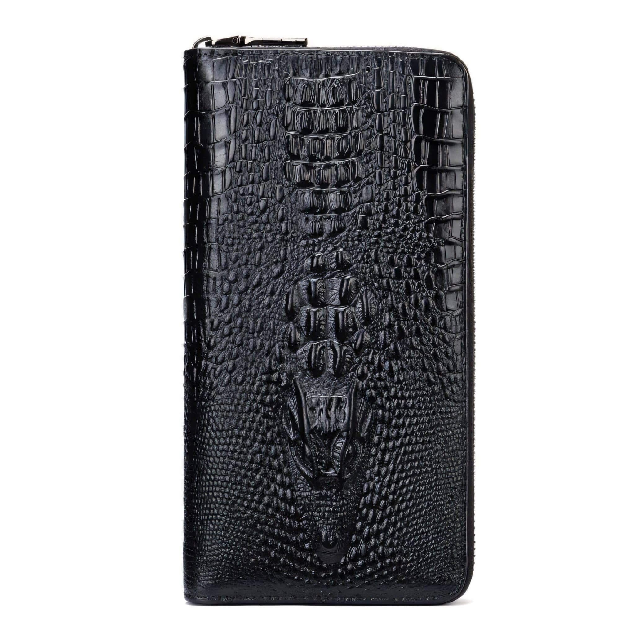 Portefeuille en cuir véritable avec motif crocodile